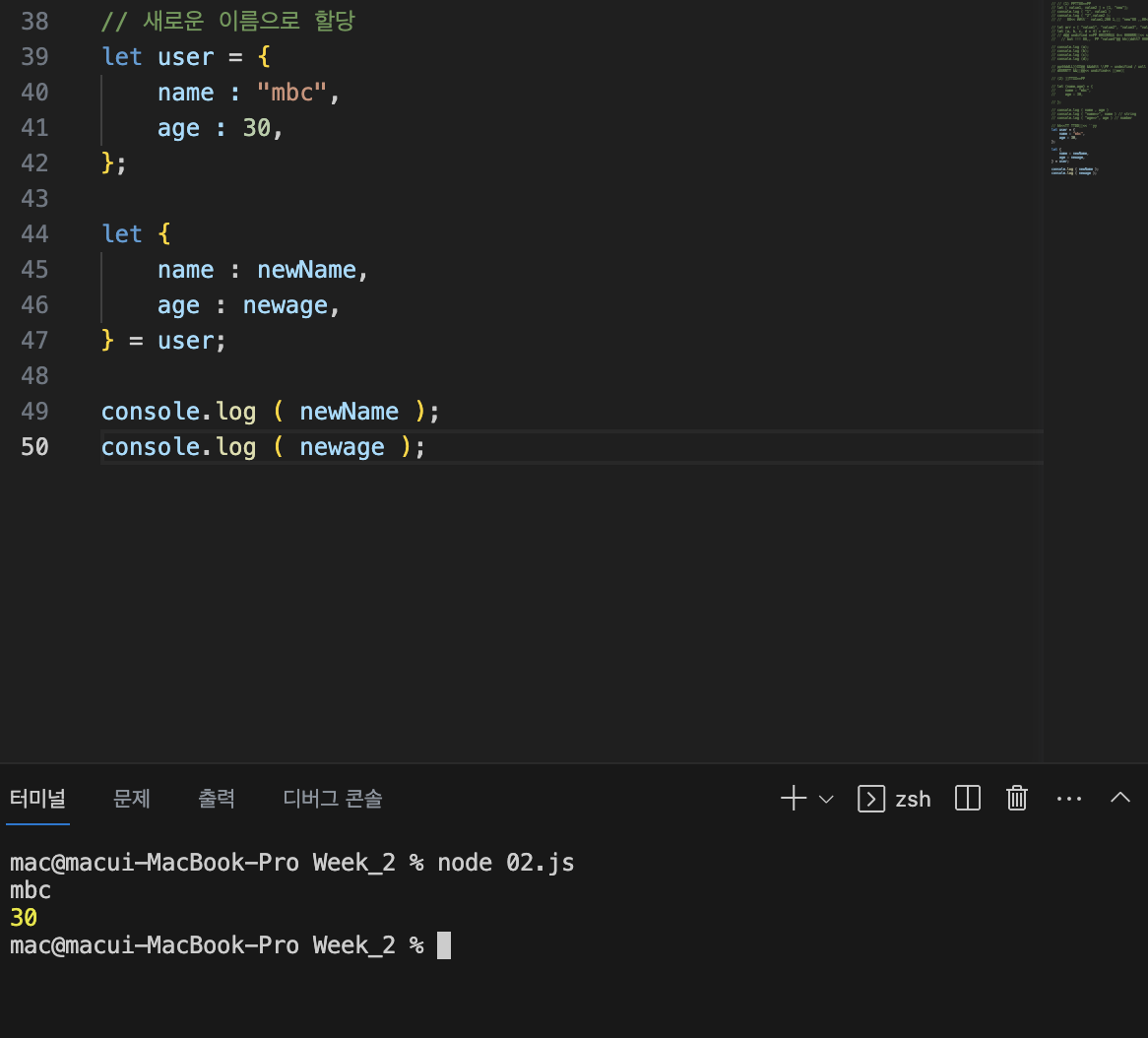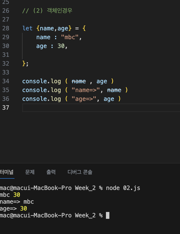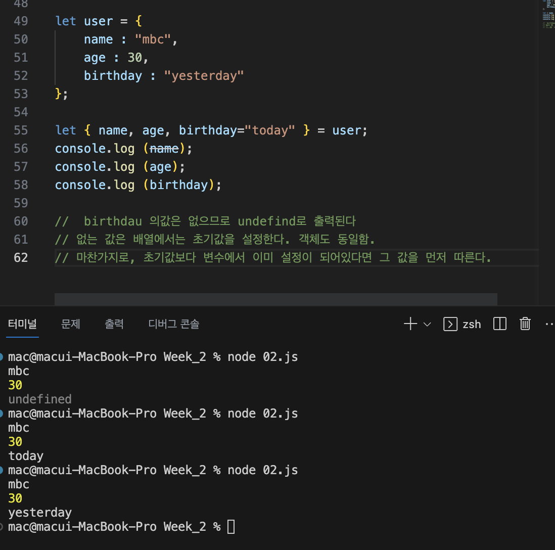 ๊ตฌ์กฐ๋ถํดํ ๋น 'Destructuring'