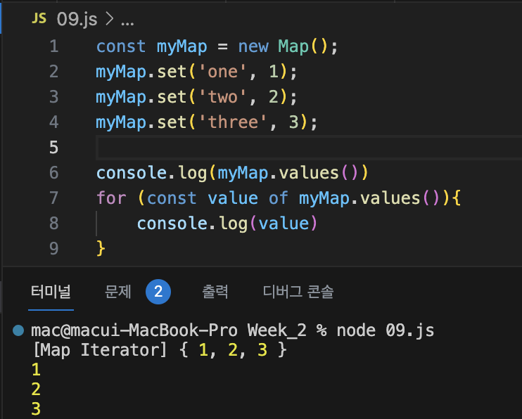 Map์์๋ keys(), values(), entries() ๋ฉ์๋๋ฅผ ์ฌ์ฉํ์ฌ ํค, ๊ฐ ๋ฐ ํค-๊ฐ ์์ ๋ฐ๋ณตํ ์ ์๋ค.