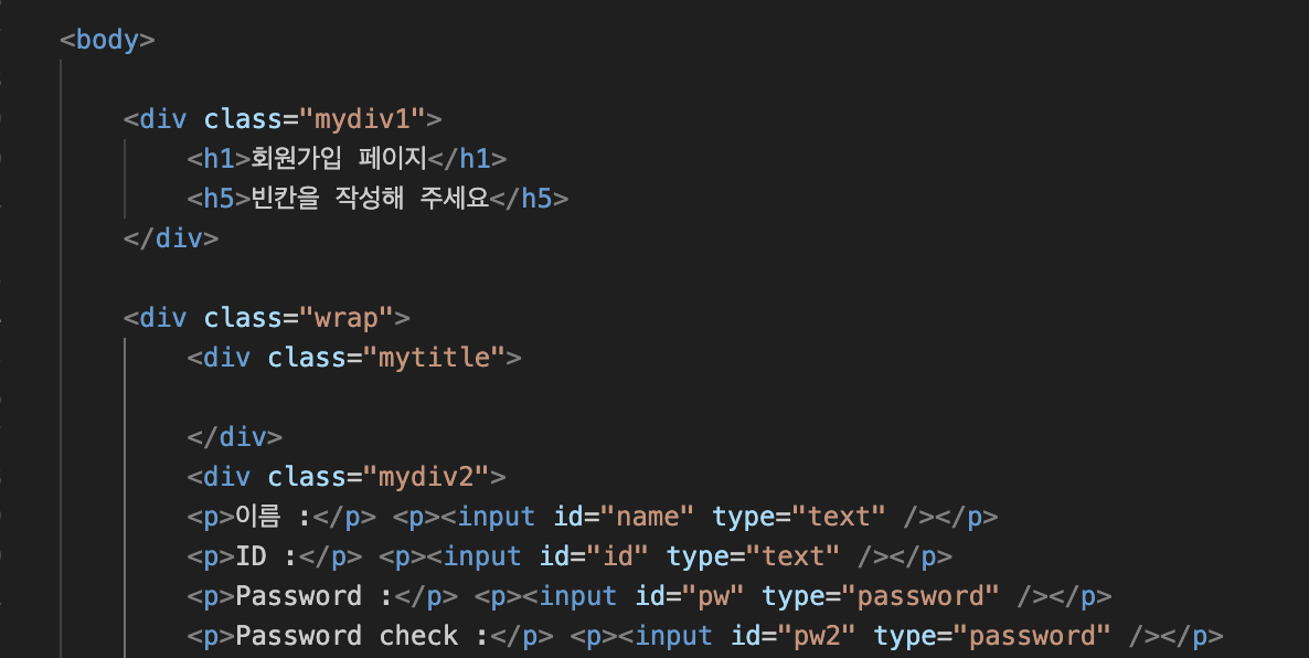 (μΌμͺ½) typeμ μ΄λ¦/ID/PW/PWCHECK λ±μΌλ‘ μ§μ ν΄ μ