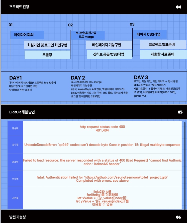 Ήμ¬λ΄κ³ μΆμκ³ '곡μ€νμ₯μ€ μ°ΎκΈ°'λΌλ μ£Όμ λ₯Ό μ νν ν 'pocket toilet'μ΄λΌλ κ°μ λ₯Ό λ£μ΄ PPTλ₯Ό λ§λ€μλ€.