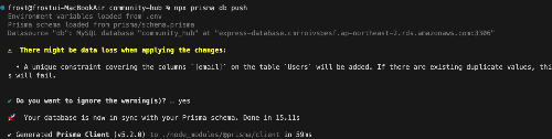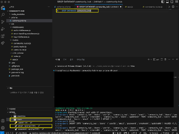 ์ community_hub๋ผ์ DROP DATABASE community_hub๋ก ์